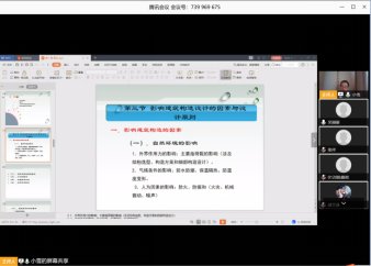 采用腾讯会议平台,效果很好,基本没有卡顿现象。上课前,微信群里通知下载腾讯会议并调试,确保所有同学可以熟练使用操作软件。正式上课前20分钟创建新的会议室,并在微信群里邀请学生加入。在微信群里告知授课时间并提前发送PDF版课件。课堂上,学生可以选择聊天实时发送信息(或配合微信群)。授课过程中,学生反映信号较好,无卡顿现象。课后,学生有任何问题,腾讯视频是一种比较好的线上授课手段。