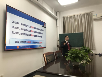2021年11月3日上午,力学与建筑工程学院在学院路校区力建楼222学习贯彻习近平总书记中央人才工作会议精神专题党课,学院院长、党委副书记左建平以“学习贯彻习近平总书记中央人才工作会议重要讲话”为题,通过线下线上相结合的方式为力建学院全体教工党员上了一堂专题党课。