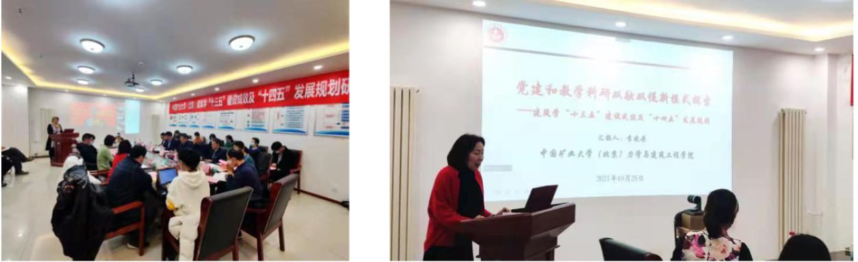 建筑学专业负责人李晓丹教授以“党建和教学科研双融双促新模式探索”为题详细汇报了建筑学“十三五”建设成效及“十四五“规划,建筑学专业通过了北京市一流专业,获评教育部“双带头人”工作室,获教育部产学研合作项目2项、北京市教改项目5项。福中苑门楼设计、沙河校区整体景观设计、学院路校区校园规划及其地下空间综合利用开发、校园一卡通设计、110周年校庆LOGO设计等,展现了建筑系师生艺术水平,为学校的建设与发展贡献了力量。