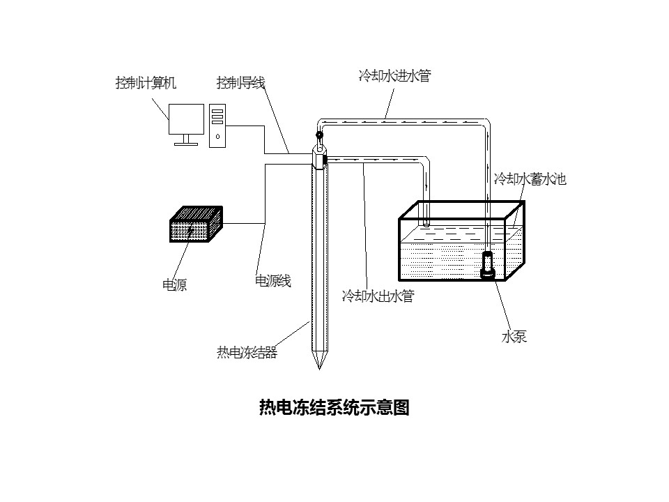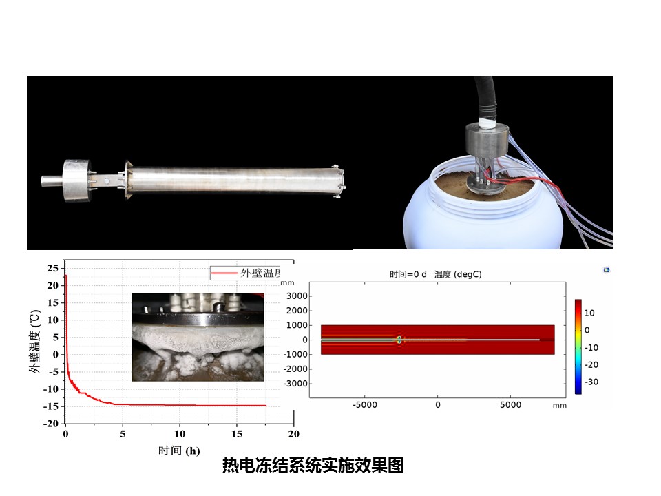 该种新型冻结器通电即制冷,可直接对地层进行冻结,无需建设冷冻站,能大幅度减少工程费用和工期,降低了成本,提高了工作效率;还可根据工程需要,实现分段冻结、定向冻结及强制解冻,节约制冷成本及缩短工期。
