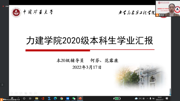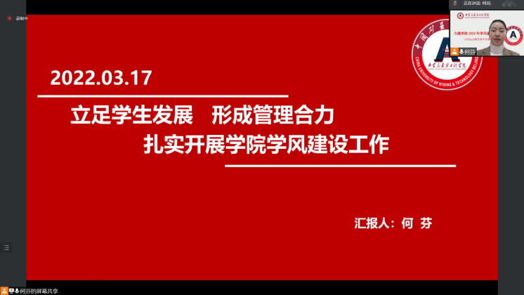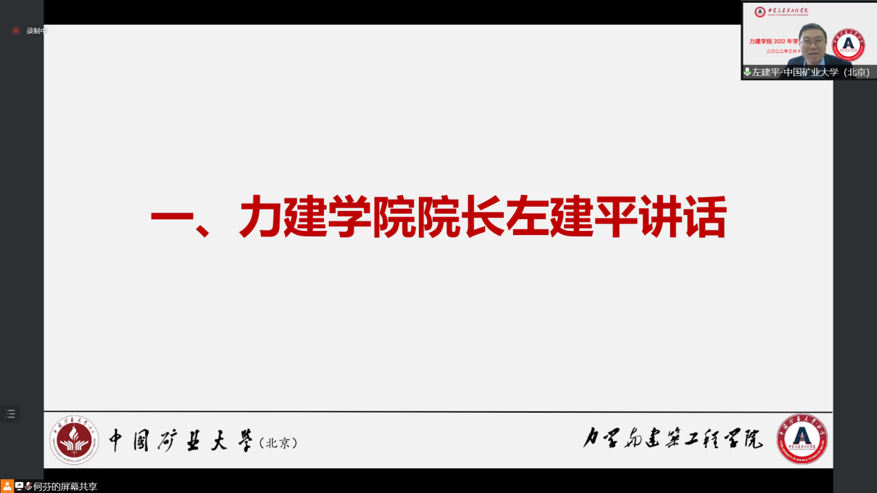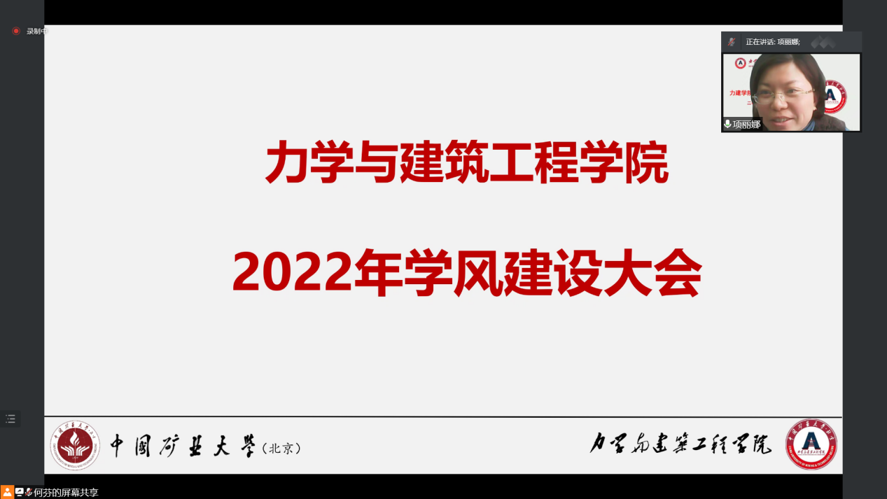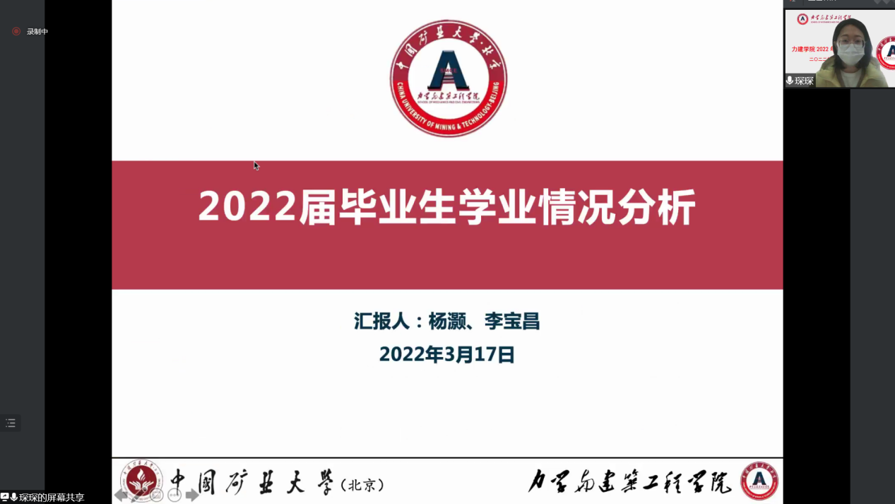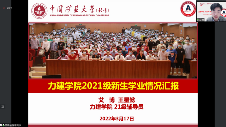 为加强学院学风建设,扎实推进学院立德树人根本任务在当前疫情防控常态化的背景下,2022年3月17日上午10点raybet最佳电子竞技平台(北京)raybet雷竞技竞猜app线上召开了raybet雷竞技竞猜app2022年学风建设大会。力建学院院长左建平教授、副院长岳中文教授、党委副书记项丽娜老师,各系(中心)本科教学主任,本科生教学秘书、各年级班主任及辅导员参加此次大会,会议由党委副书记项丽娜老师主持。