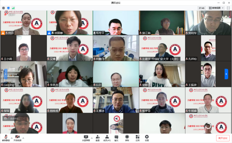 力建学院院长左建平教授从2022届毕业生考研升学现状和沙河校区学生线上授课实际出发,提出加强学风建设迫在眉睫。要充分发挥“双导并驱”、学院各系主任、班主任的力量共同加强学风建设,做到“润物细无声”。学院要根据自身情况和特点,通过“好学至善”学业辅导平台,营造良好的学风建设氛围,打造出学风建设的特色品牌。