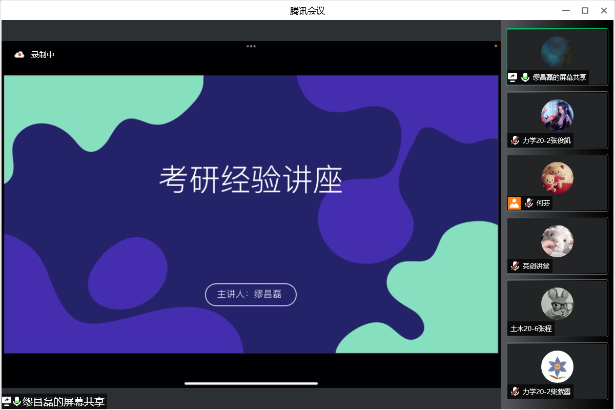 随后,进行分享的是考入重庆大学航空航天学院机械专业的缪昌磊学长。他介绍了如何准备考研初试的基础上,又讲到了关于复试和调剂的问题。他强调复试的时候心态一定要平稳,努力回答面试老师提出的问题,复试老师们都是很和蔼的,不要过于畏惧,以免心态上出问题。