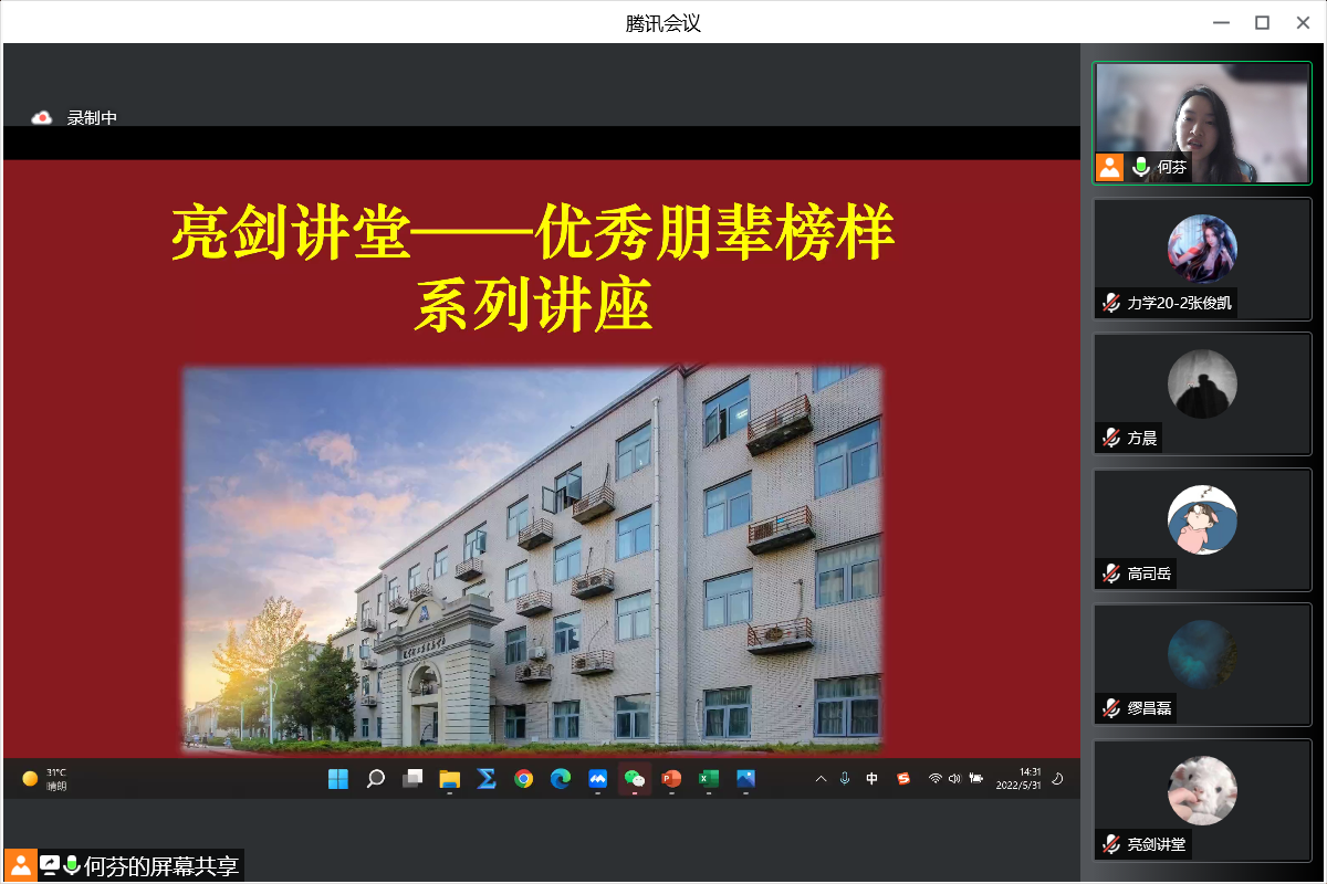 为了引导同学们做好未来规划,明确方向,让同学们深入了解升学及就业,响应学院学风建设的号召,雷竞技官网于5月31日下午线上举办亮剑讲堂——优秀朋辈系列讲座(二),特别邀请雷竞技官网五名2022届学生代表为雷竞技官网学生做专题讲座。讲座由学院团委副书记何芬老师主持。
