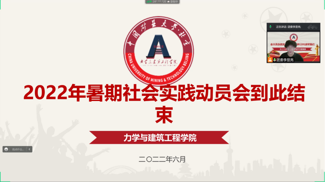习总书记指出,奋斗是青春最亮丽的底色,行动是青年最有效的磨砺。为引导学生了解社会,增强学生的责任感与使命感,树立正确的人生观、价值观、世界观,提高同学们的综合素质,并动员本科一二年级的同学们积极参与暑期社会实践活动,雷竞技官网于2022年6月15日晚7点在线上召开了2022届暑期社会实践动员大会
