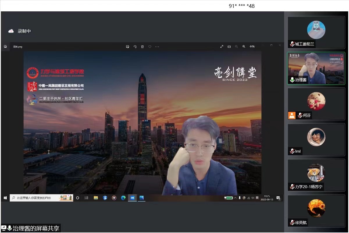 9月13日晚7时,雷竞技官网土木工程专业2022届毕业生、现就职于中建一局建设发展有限公司、优秀学长王治理受邀为雷竞技官网学生做主题为《人生不是单选题,我想给你备选项》“学长学姐求职说”系列专题讲座。讲座由院团委副书记何芬老师主持。