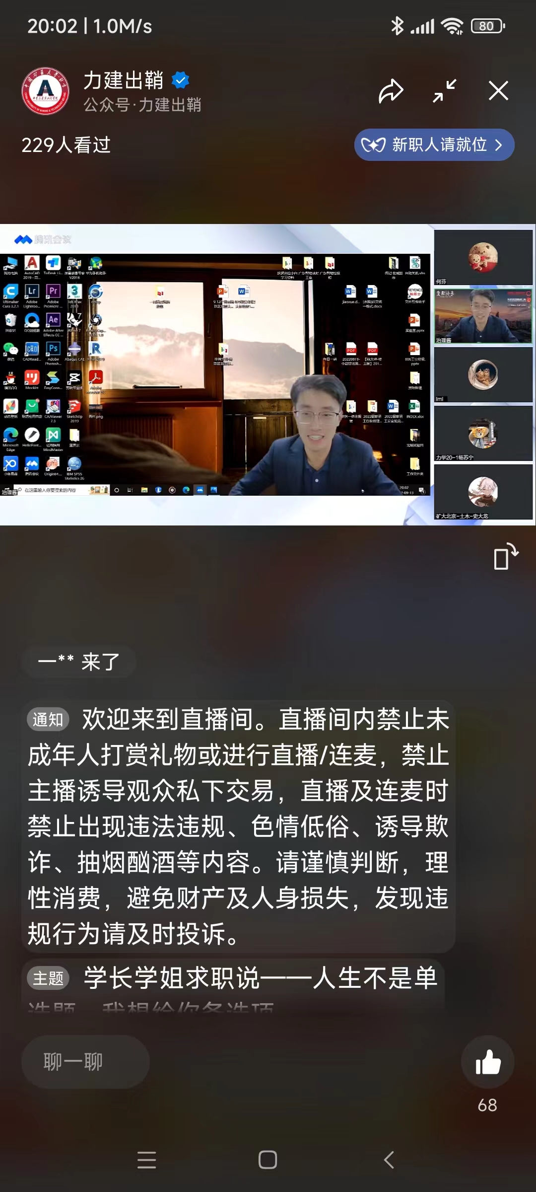 为扩大讲座的影响力,本次讲座同时在腾讯会议和雷竞技官网官方视频号“力建出鞘”进行同步直播,利用双平台为同学们提供了灵活的听讲方式,讲座现场覆盖力建、安全、地测、机电各学院学生,线上观看最高人气到达了229人次。本次讲座由“好学至善”学业辅导工作室主办,院学生会承办,“育心建力”心理工作室协办。